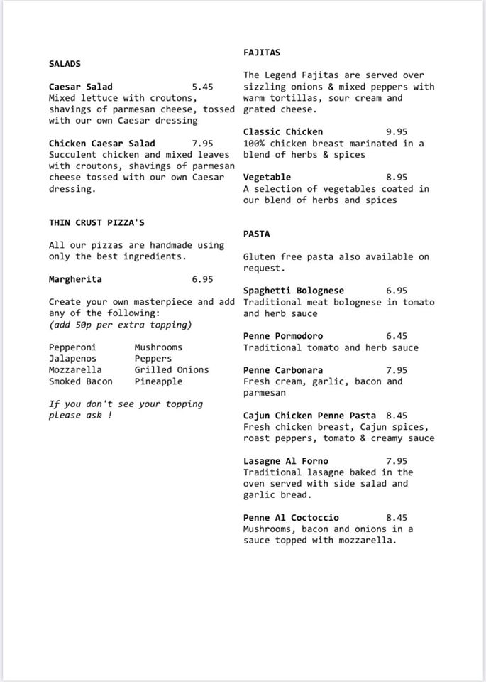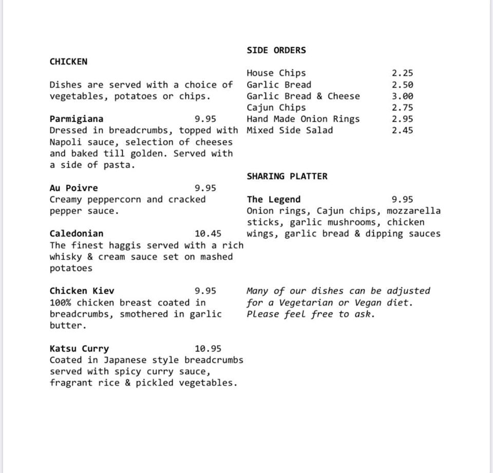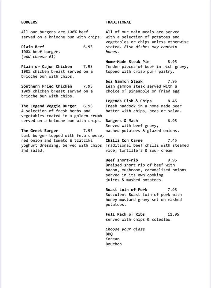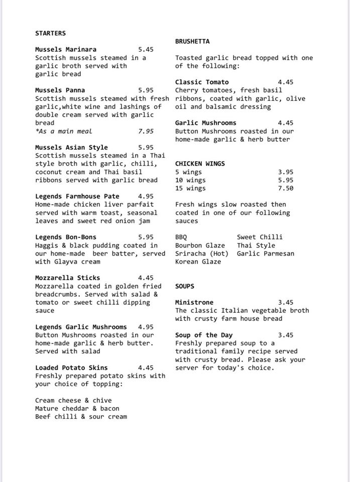 Legends Sports Bar & Bistro on Somervell Street impresses with a menu that balances hearty comfort food with bold, flavorful twists. The Fried Green Tomatoes stand out as a perfect starter-crispy on the outside, tangy and tender on the inside, setting the tone for a menu that doesn’t shy away from classic favorites. For sharing or a more indulgent option, the BBQ Nachos deliver a satisfying combination of smoky barbecue, melted cheese, and crunchy tortilla chips, making them ideal for both casual bites and game-day snacking. Beyond these signature dishes, the menu offers a diverse range of options that cater to both traditional and adventurous palates, blending familiar flavors with creative presentations. Every dish is thoughtfully crafted, ensuring that whether you’re sampling starters or diving into the heartier offerings, each bite maintains the high standard Legends Sports Bar & Bistro is known for. The pricing reflects good value, particularly considering the generous portions and quality ingredients, making the menu approachable without compromising on taste or presentation. Overall, the restaurant’s menu captures the essence of a vibrant sports bistro while maintaining a culinary flair that keeps patrons returning.
